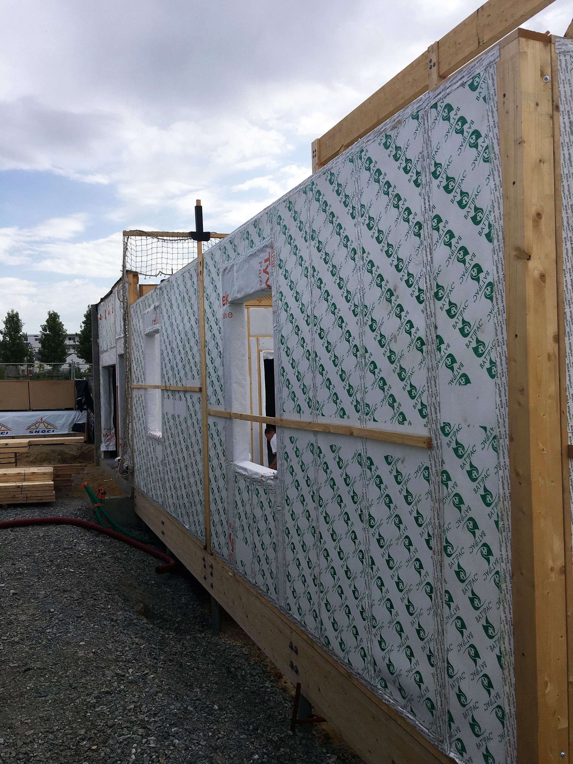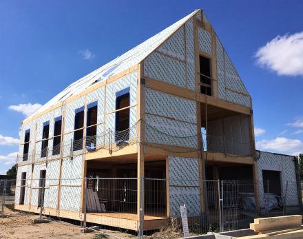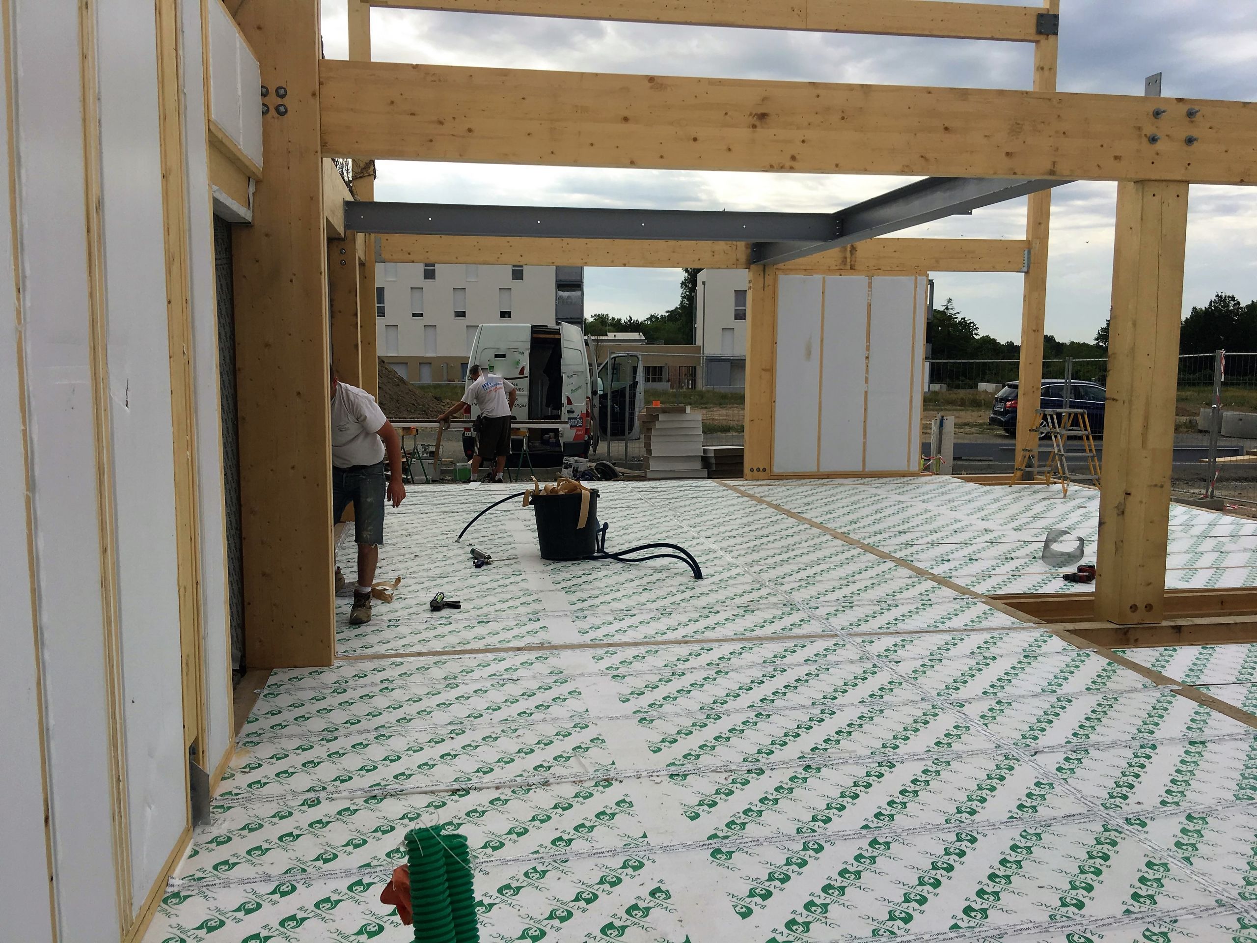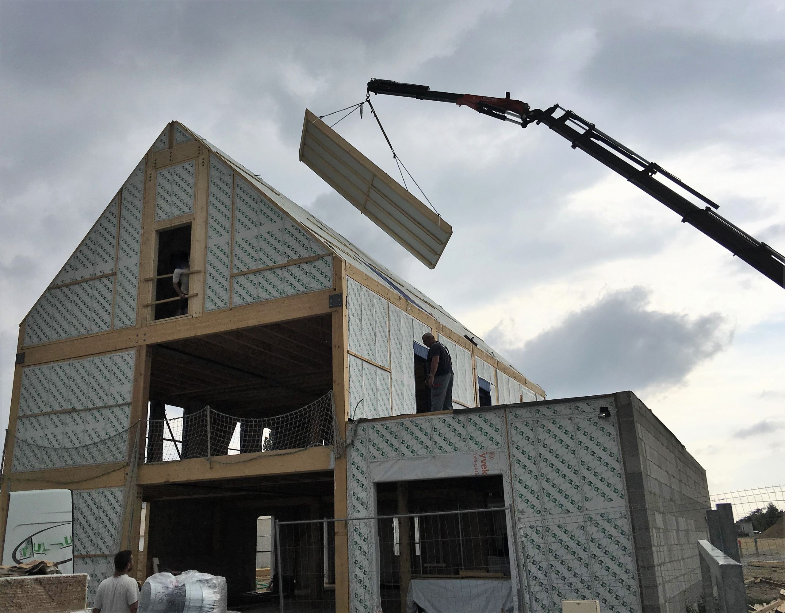 Réalisation à Angers d’un bâtiment zéro béton de près de 400m² et 11 mètres de haut, construit à 100% en IPAC® (Murs, Toiture, Plancher, Cloisons).